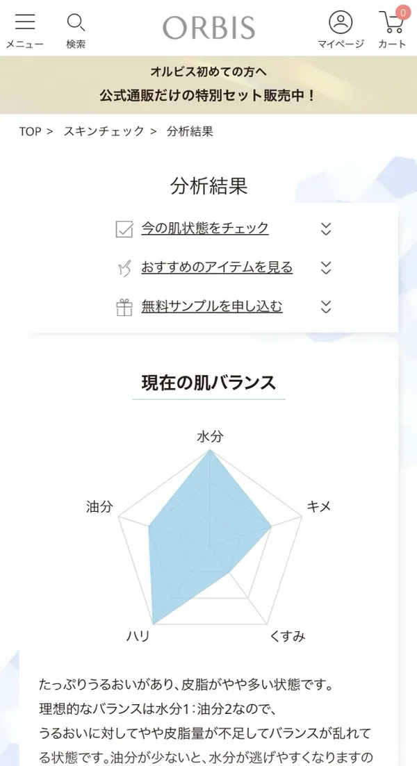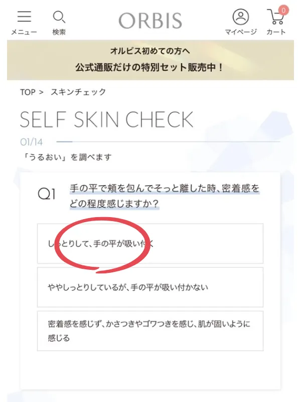 そこでおすすめしたいのが自分の肌質がすぐにわかる、オルビスの「スキンチェック」。