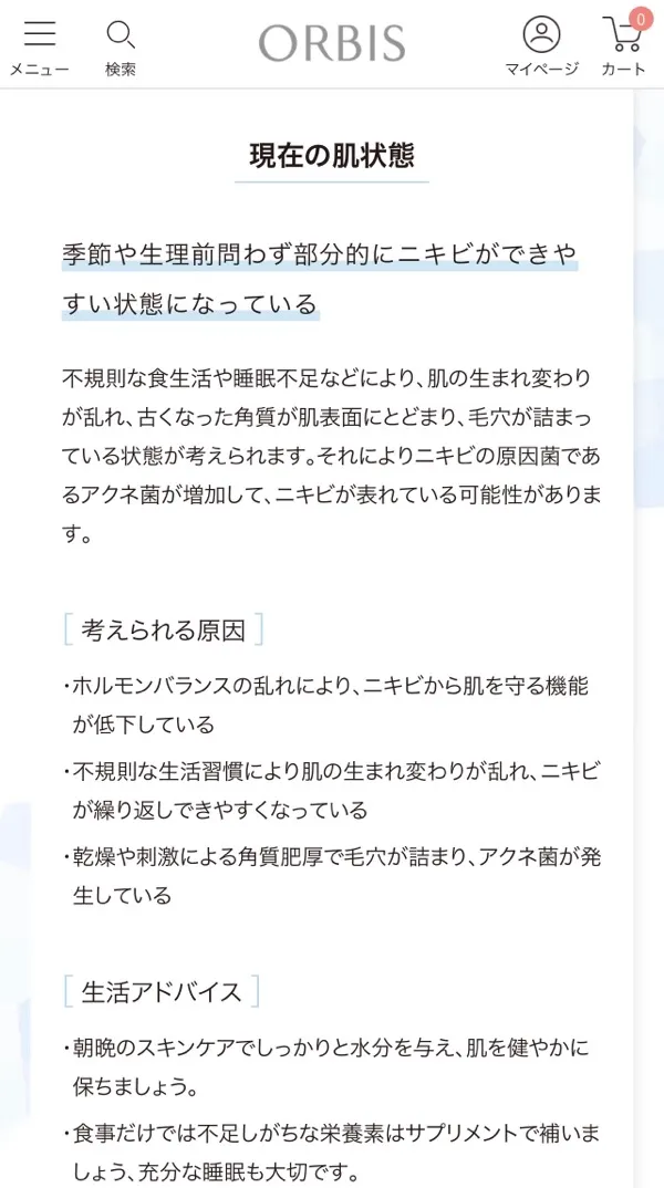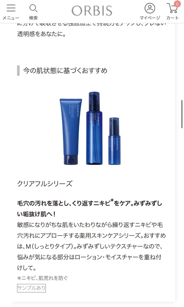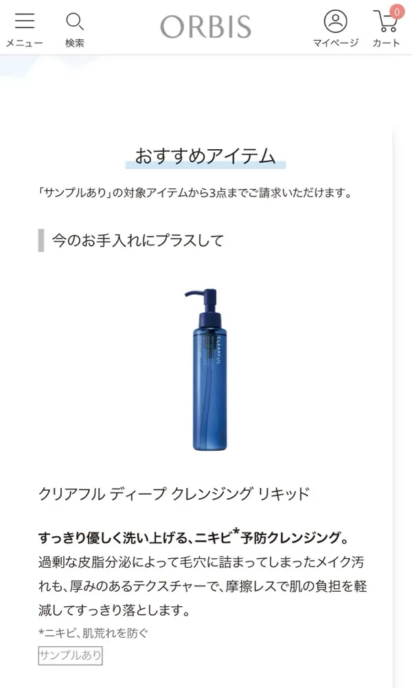 さらにその下では、あなたに合った「オルビスのおすすめアイテム」を教えてくれます。