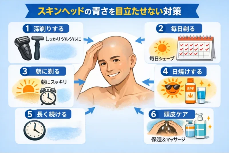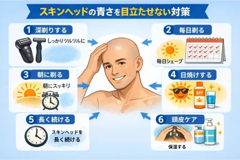 この記事では、「スキンヘッドが青くなる原因」をわかりやすく解説しながら、青さを目立たせないための対策を紹介していきます。