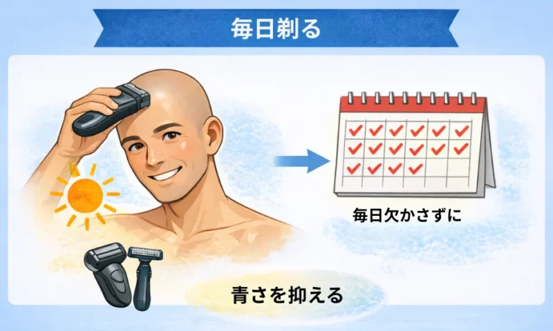 青さを目立たせなくする方法として、頭を毎日剃ることも重要です。