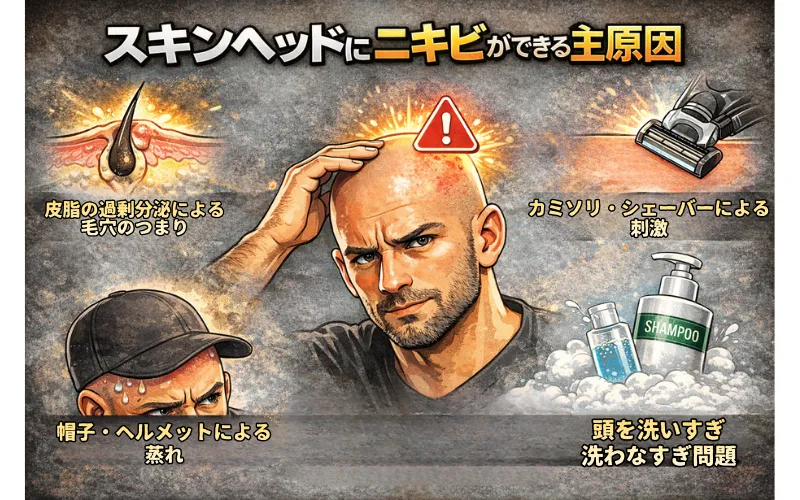 スキンヘッドにニキビができる主な原因
